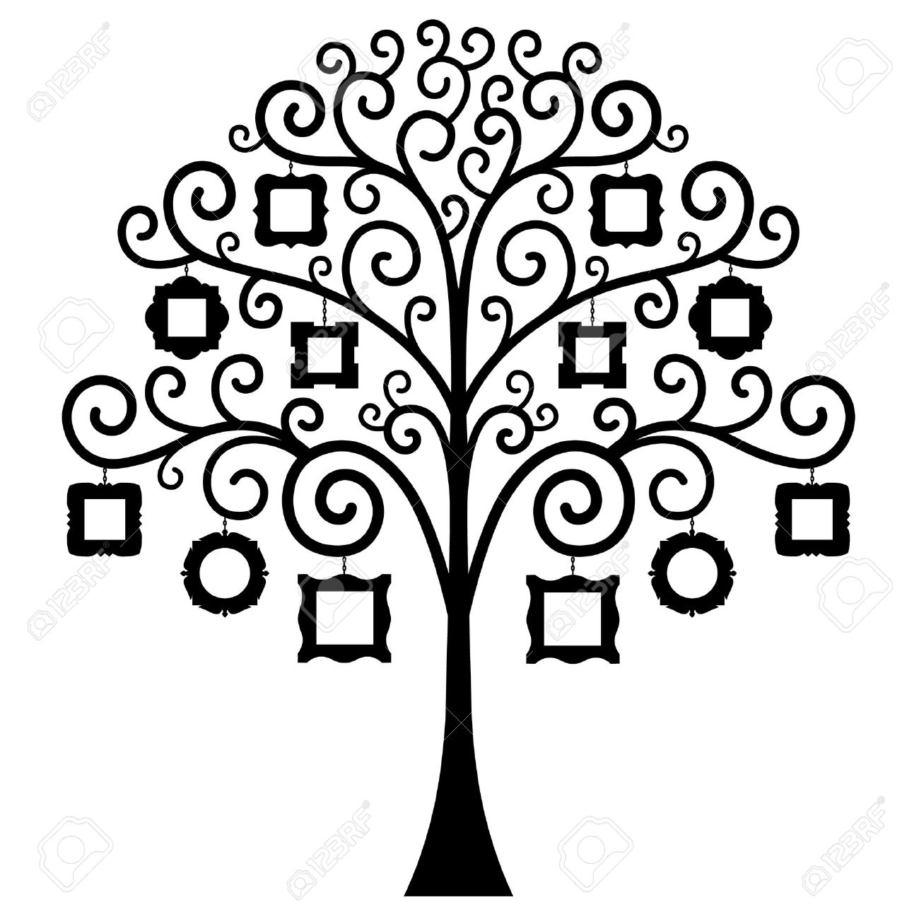 Árbol Con Los Marcos Para Las Fotos Aisladas Sobre Fondo Blanco. Ilustración. La Plantilla Para El Álbum. Silueta De Un Árbol Genealógico. Ilustraciones svg, vectoriales, clip art vectorizado libre de derechos. Image
