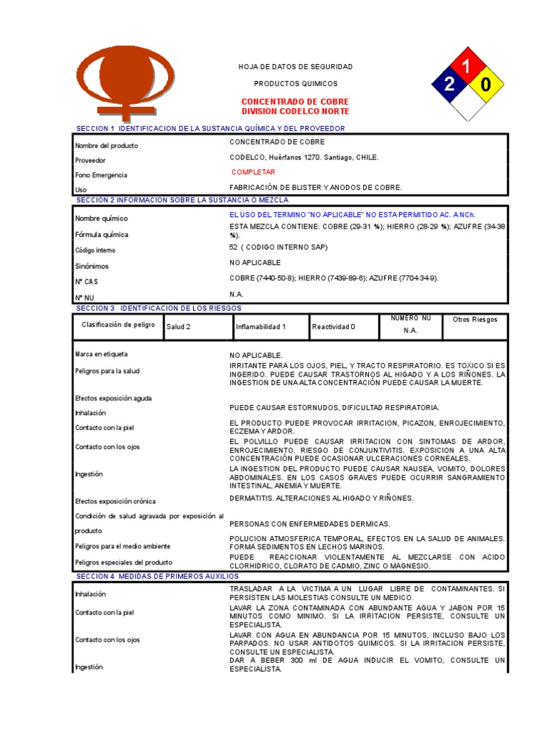 Concentrado de Cobre Nac. Esp - codeLCO NORTE | PDF