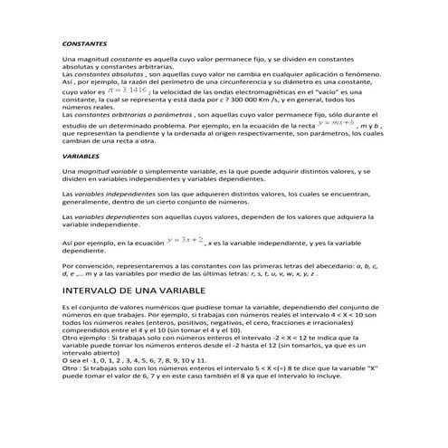 Cuáles son las constantes y las variables? en matemática este tema ...