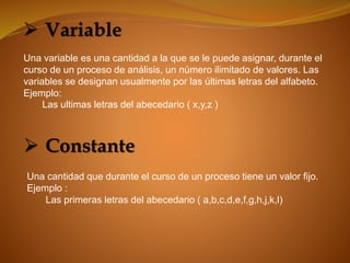 VARIABLES Y CONSTANTES (ÁLGEBRA)