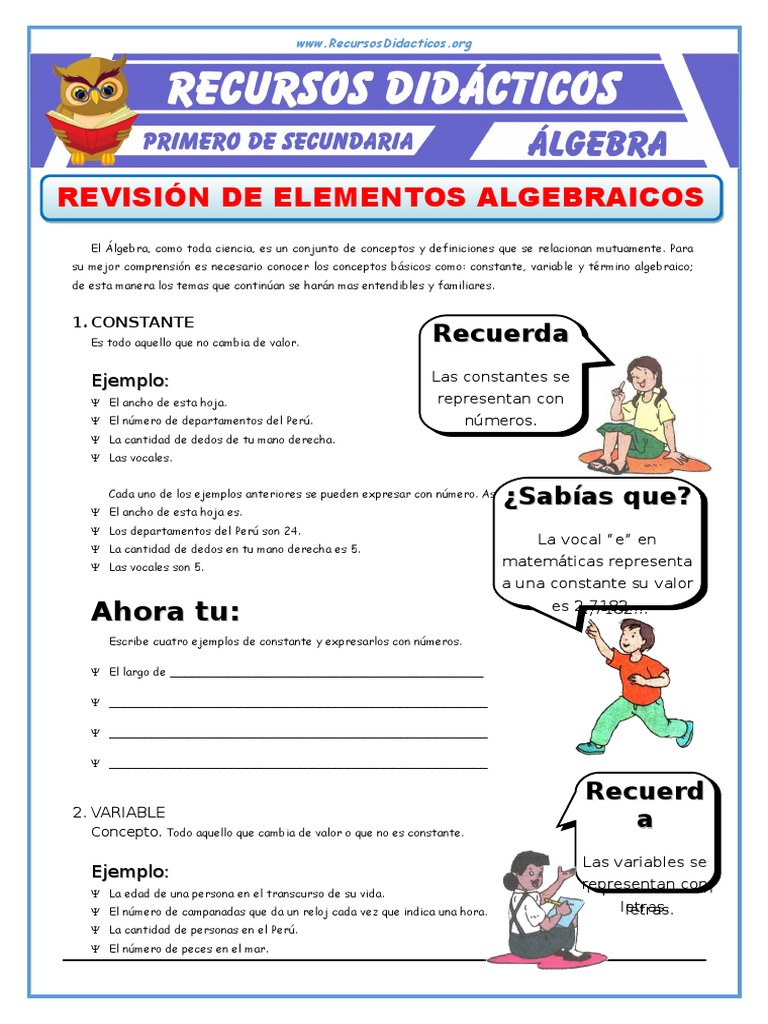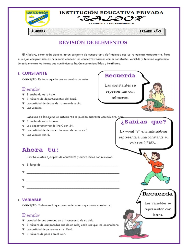 Revisión de Elementos Algebraicos para Primero de Secundaria | PDF ...