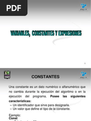 Constantes Variables y Expresiones | PDF | Variable (informática ...