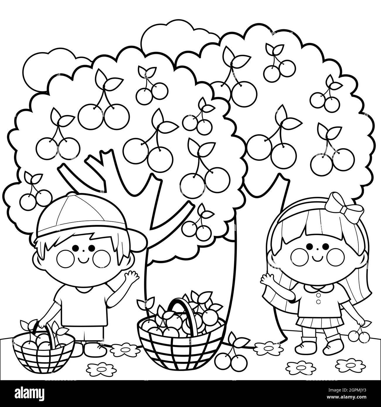Niños dibujando naturaleza y cosecha Imágenes de stock en blanco y negro - Alamy