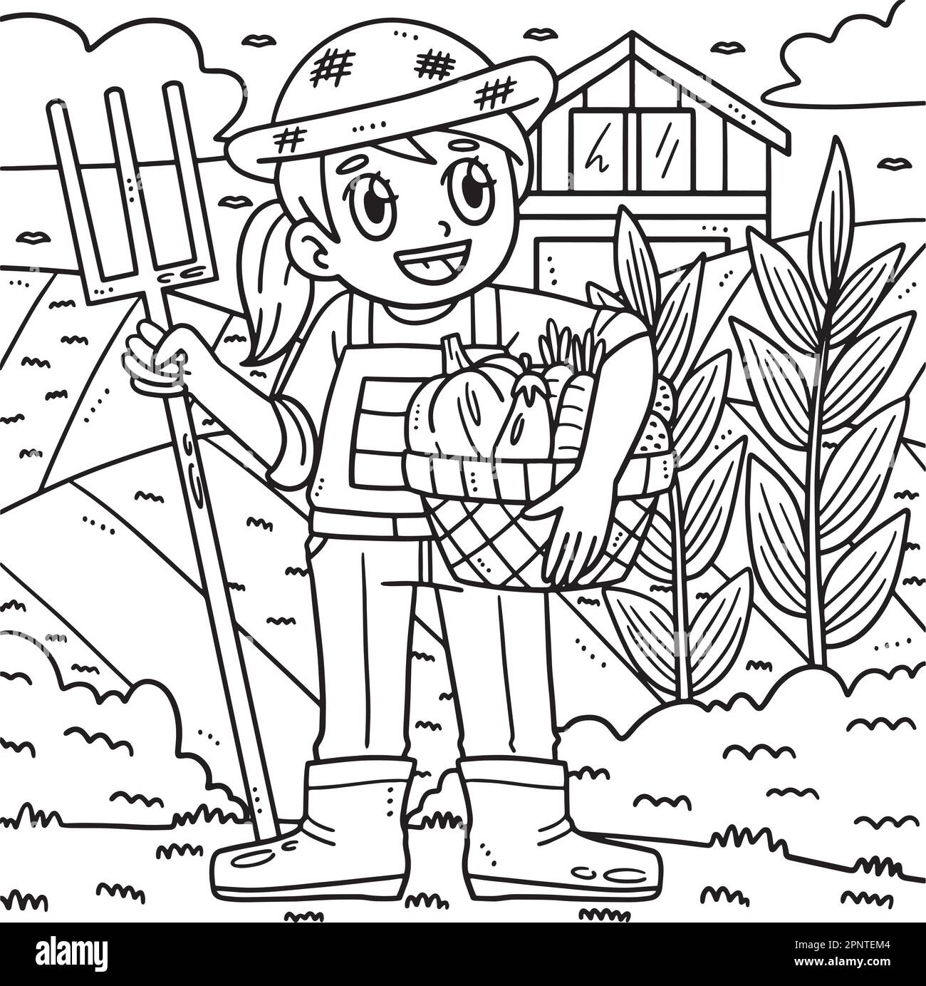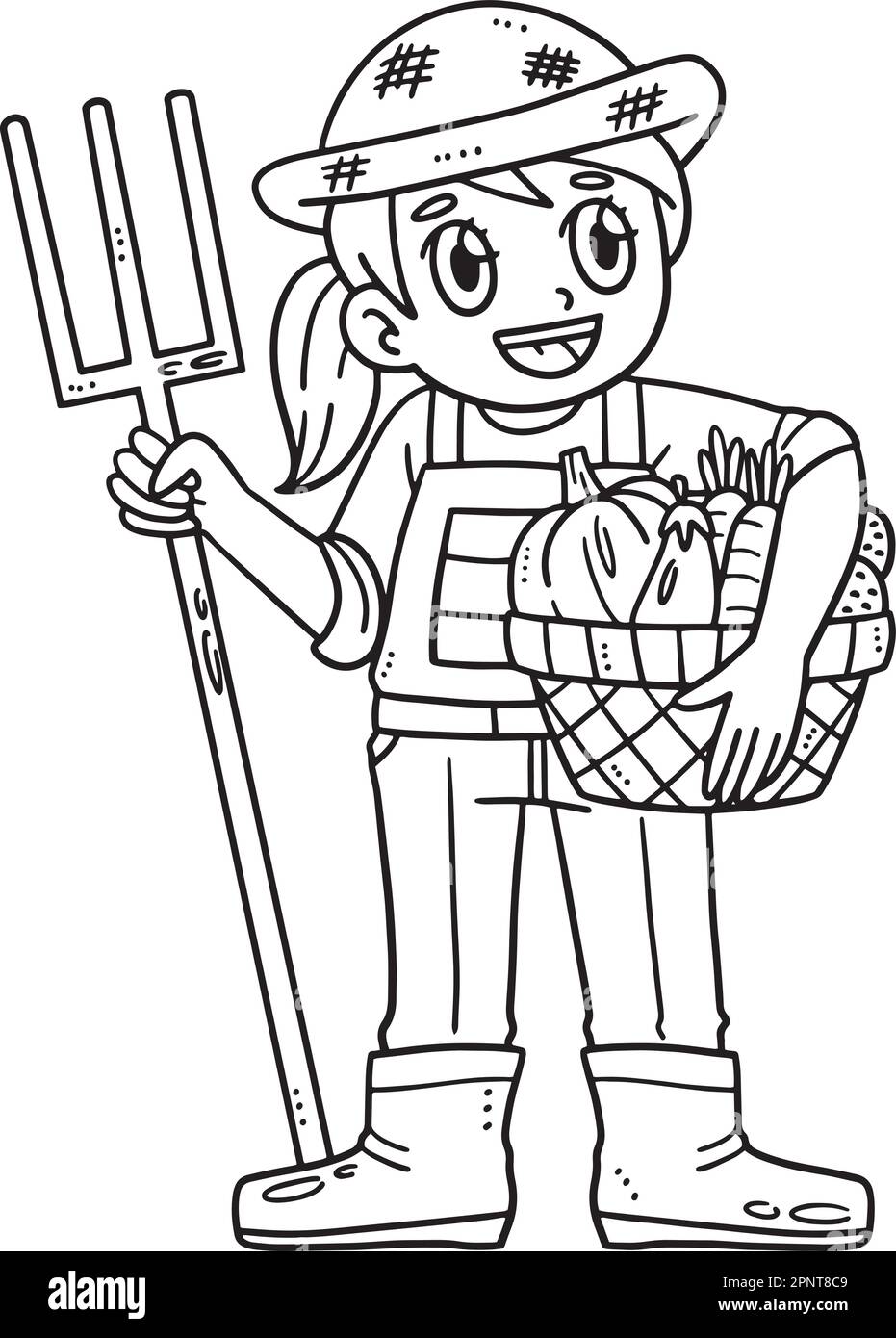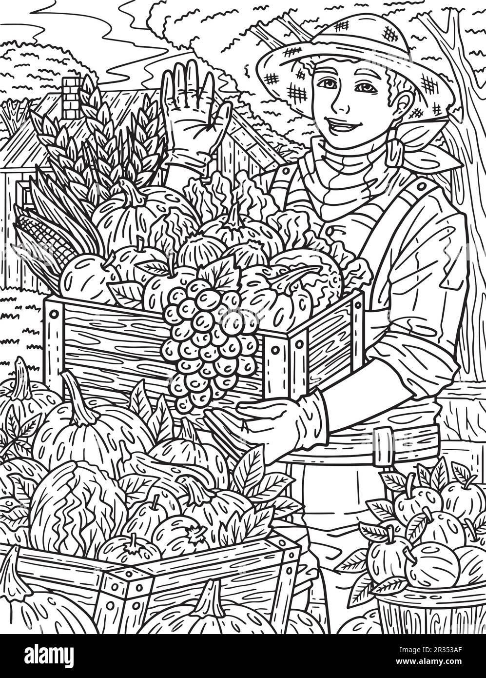 Agricultor del Día del Trabajo con Página de Colorear de Cosecha Imagen Vector de stock - Alamy