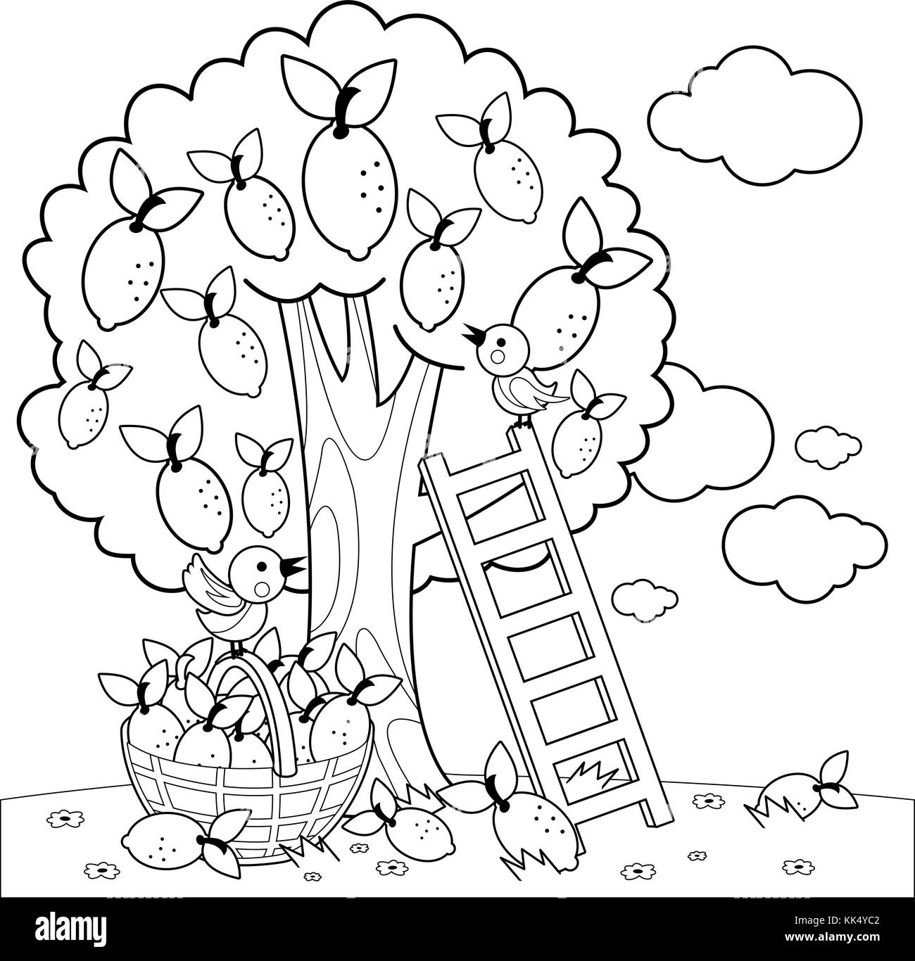Lemon Tree página de libro para colorear de cosecha Imagen Vector de stock - Alamy