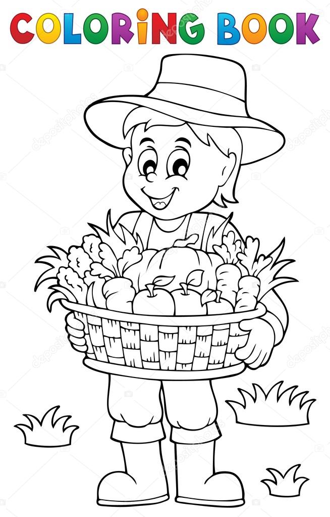 Книжка-раскраска С Фермером Урожая 3 - Векторные Иллюстрации. Клипарты, SVG, векторы, и Набор Иллюстраций Без Оплаты Отчислений. Image 59804735