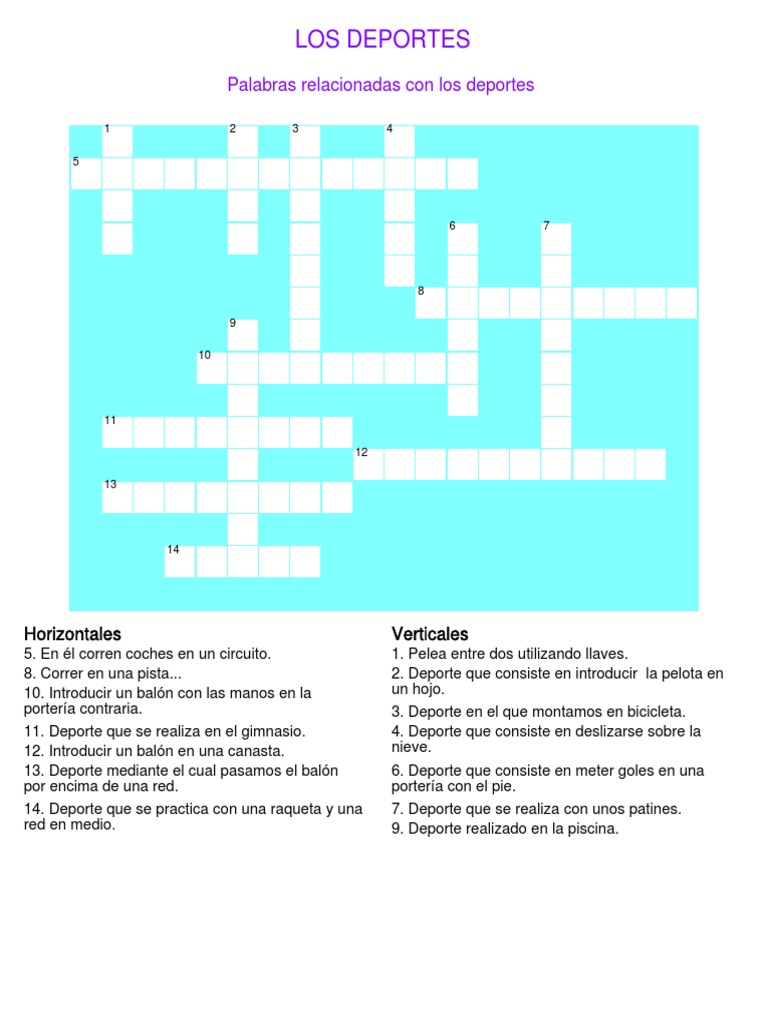 Crucigrama sobre los deportes | Teaching, Diagram, Crossword