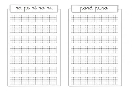 Cuaderno de escritura letras p m l s t cuadrícula y pauta