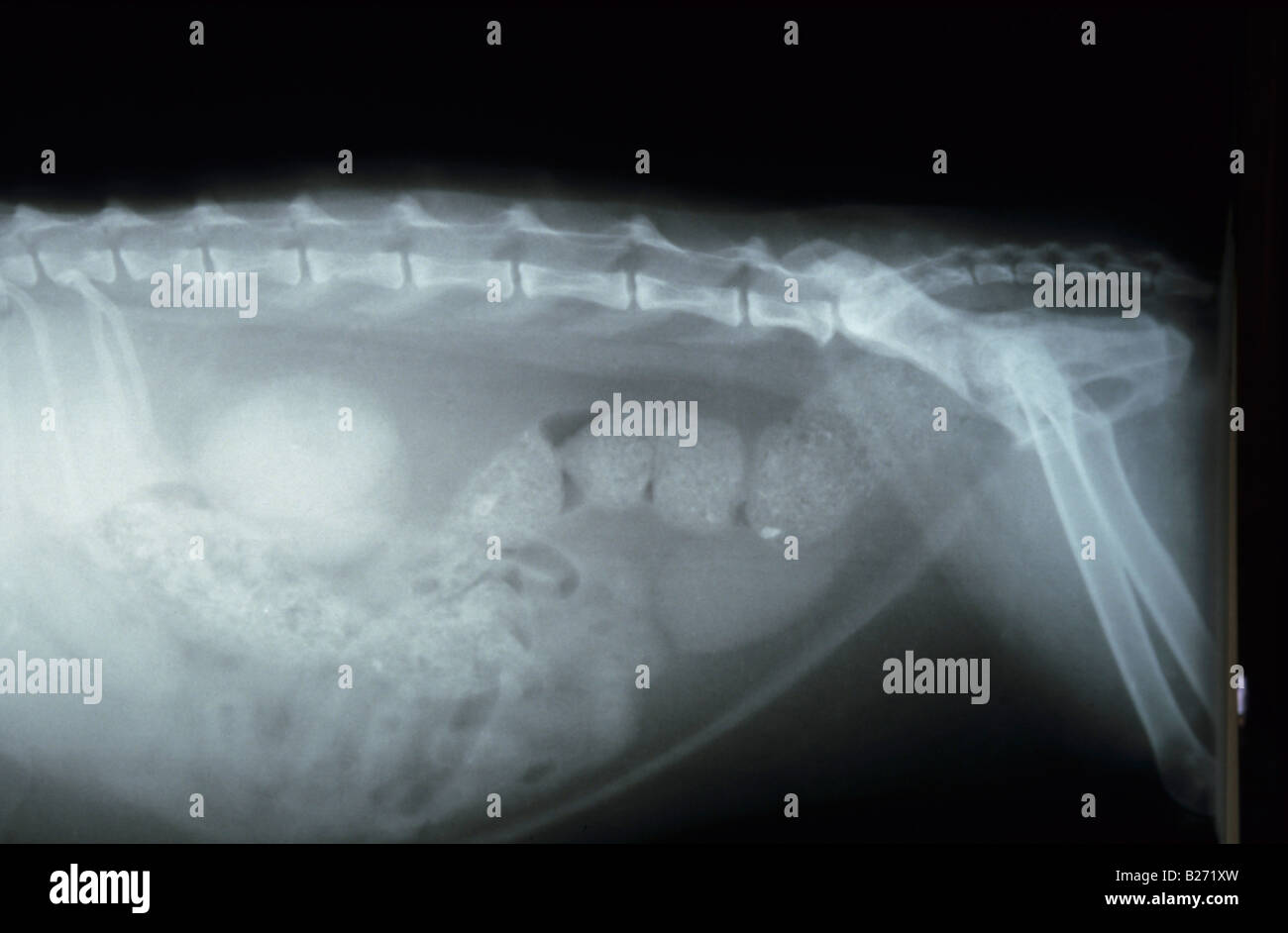 Radiografía digital de la cavidad abdominal con cuatro cuerpos extraños (cuerpo alieno) en los intestinos de un perro Fotografía de stock - Alamy