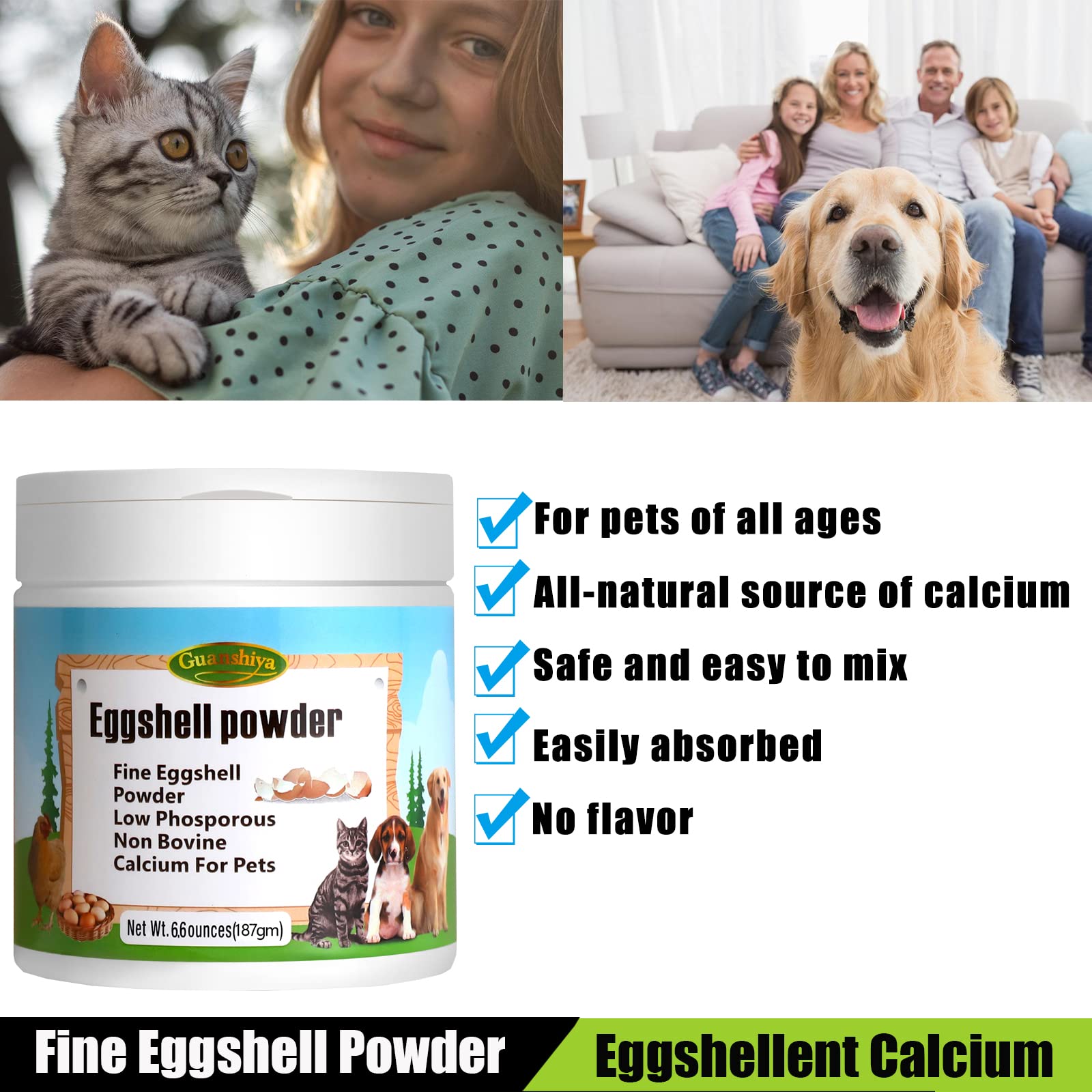 Amazon.com: Polvo de cáscara de huevo de 6.6 onzas, calcio para perros y gatos, suplemento de calcio fino en polvo de cáscara de huevo para perros y gatos, promueve la contracción saludable
