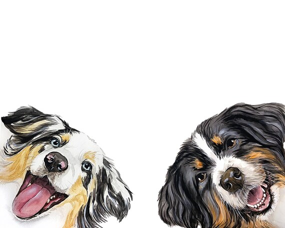 Retrato de mascota personalizado de 2 perros Peekaboo retrato Retrato de perro personalizado de la foto Pintura de perro personalizada Regalo de pérdida de perro - Etsy España