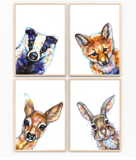 Curioso animal del bosque peekaboo arte mural y tarjetas. - Etsy México