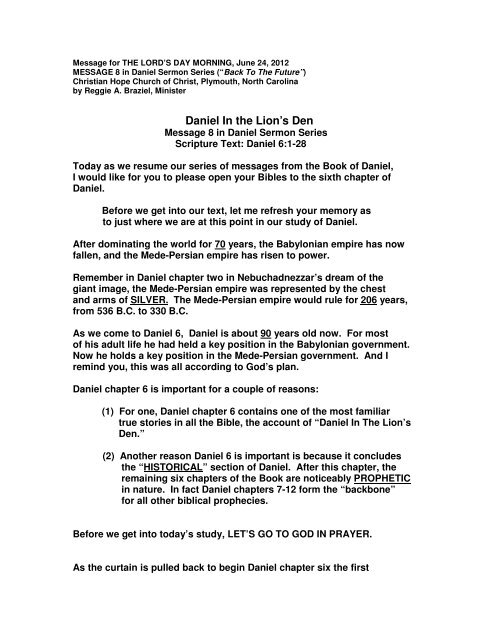 Sermon Daniel: “History in Preview” 8/20/17 6:30PM Daniel 11 on Vimeo