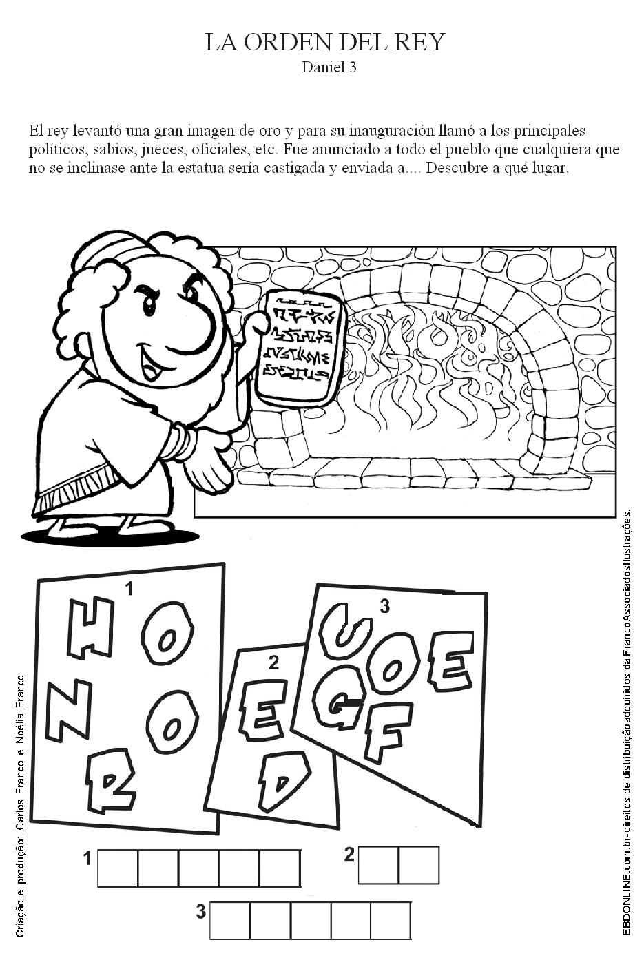DIBUJOS PARA COLOREAR. SADRAC, MESAC Y ABEDNEGO | Artesanía biblica, Sadrac mesac y abednego, Dibujos para colorear