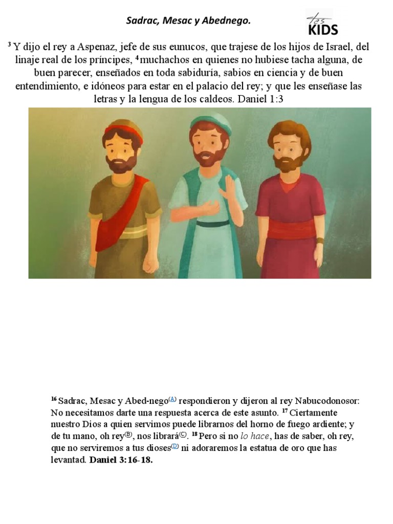 Sadrac, Mesac y Abednego, Un Ejemplo A Seguir | PDF | Daniel (figura bíblica) | Nabucodonosor Ii