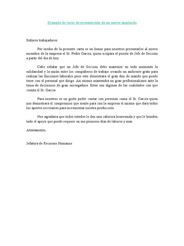 Ejemplo de Carta de Presentación de Un Nuevo Empleado | PDF