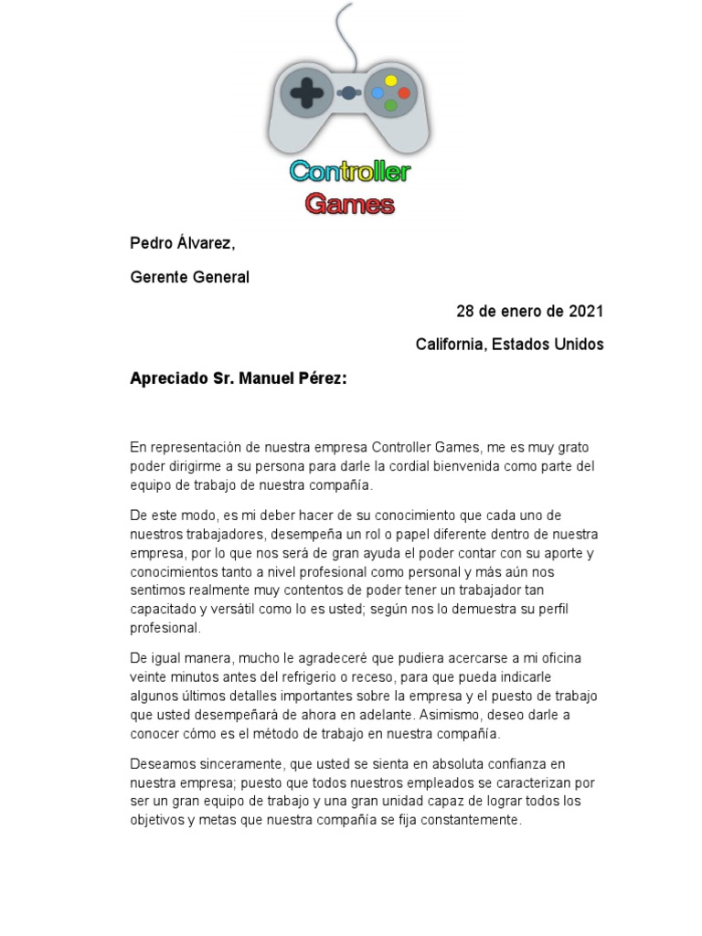 Carta de Bienvenida A Un Nuevo Empleado Jose Rosario 3ero B | PDF
