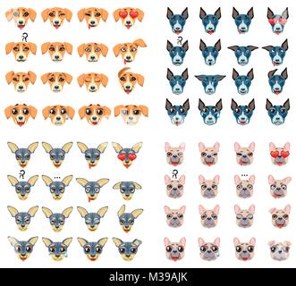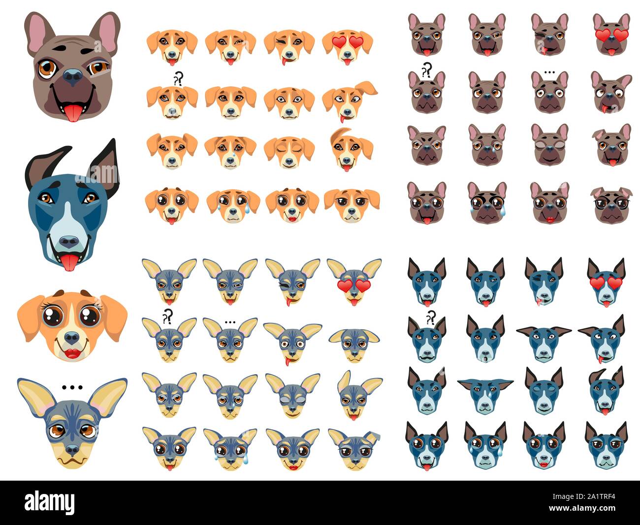 Conjunto de perros Emoji emoticono Expresión. Bulldog Francés, Golden Retriever, Bullterrier, toy terrier Imagen Vector de stock - Alamy