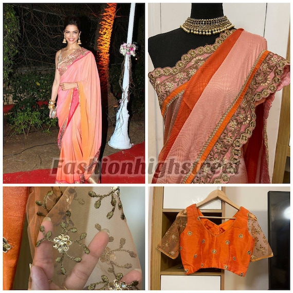 La actriz india Deepika padukone melocotón sari. Sari pesado kundan y zari bordado. Borde pesado alrededor con doble sombra. - Etsy España