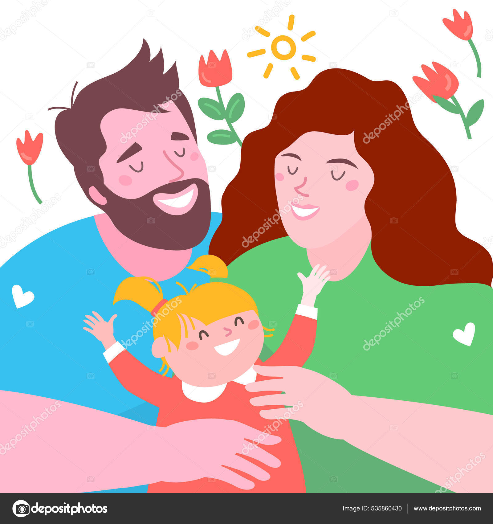 Madre E Padre Abrazándose Con Su Hijo Concepto De Amor Familiar Y Crianza Ilustraciones svg, vectoriales, clip art vectorizado libre de derechos. Image 97101186