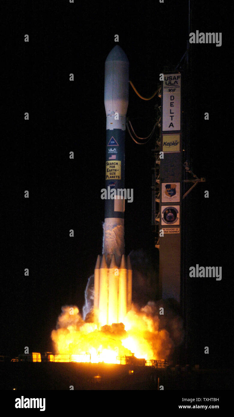 Un cohete Delta II Lanza el telescopio Kepler de la NASA, el primer telescopio diseñado para buscar planetas similares a la Tierra, en nuestra galaxia Fotografía de stock - Alamy