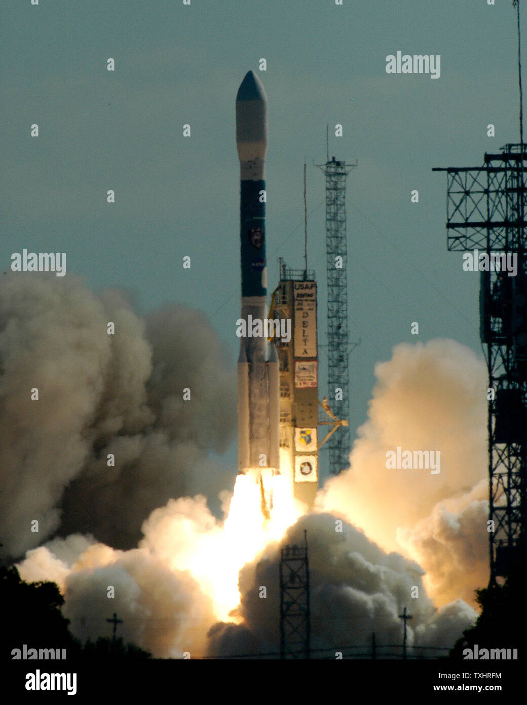 Une fusée Delta 2 DE LA NASA lance à 7:34 AM à partir de la base aérienne de Cap Canaveral, Floride le 27 septembre 2007. Le véhicule de lancement porte l'aube chaînes