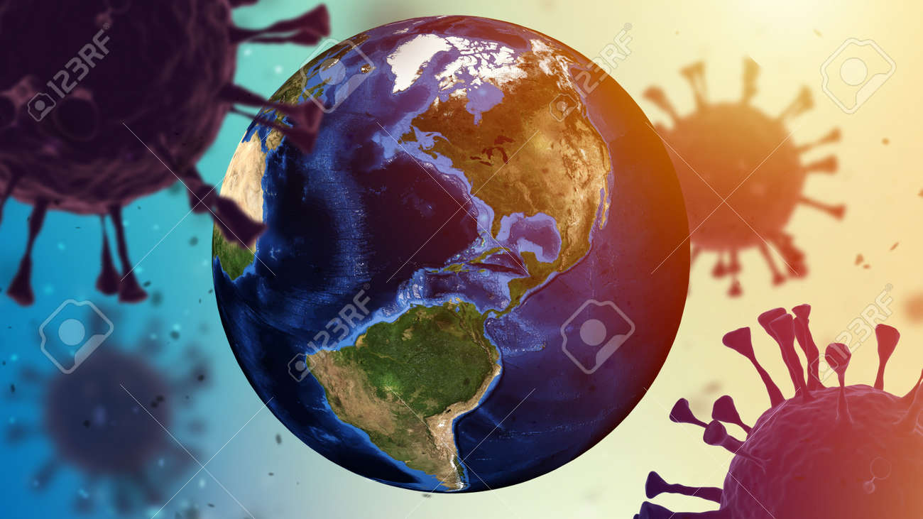 Omicron Delta Plus. La Enfermedad COVID-19 Muta. Nueva Variante Del Coronavirus. Peligro De Infección Por Coronavirus SARS-CoV-2. Virus Gigantes Alrededor Del Planeta Representación 3d Del Planeta Tierra, Elementos De La NASA Fotos,