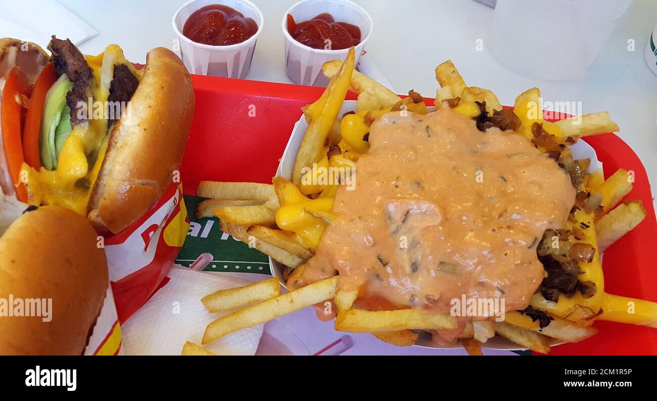 Dentro y fuera de la hamburguesa papas fritas fotografías e imágenes de alta resolución - Alamy