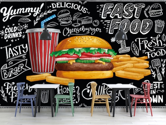 Papel tapiz extraíble fácil de restaurante de comida rápida personalizable, mural de pared de cafetería con estilo de hamburguesa - Etsy España