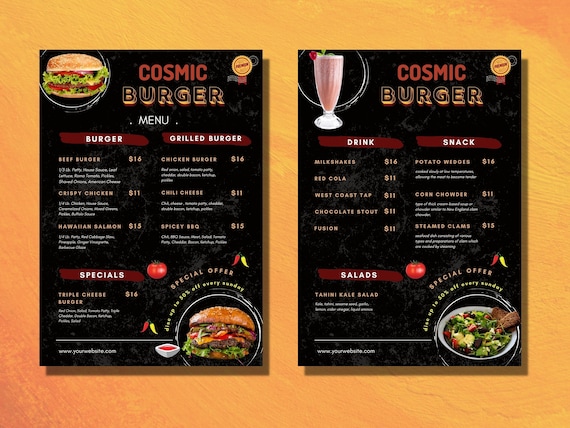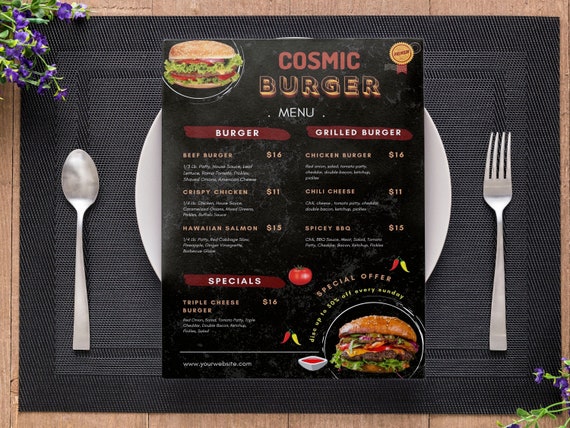 Plantilla de menú de hamburguesas con foto, menú de restaurante editable, lista de precios de alimentos - Etsy México