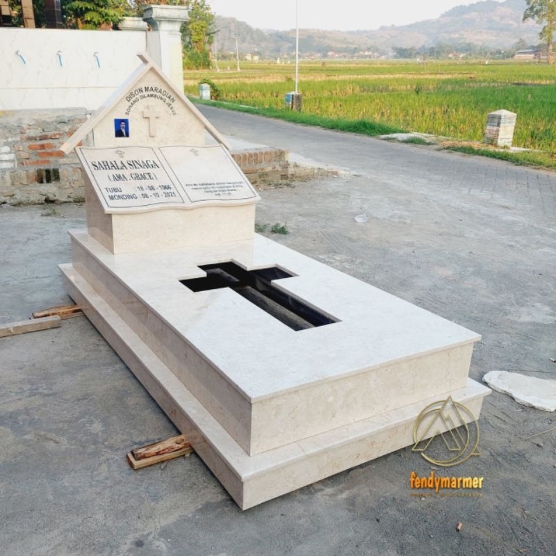 Jual Kijingan makam kristen nisan model rumah batu marmer putih berkualitas 200x100 | Shopee Indonesia