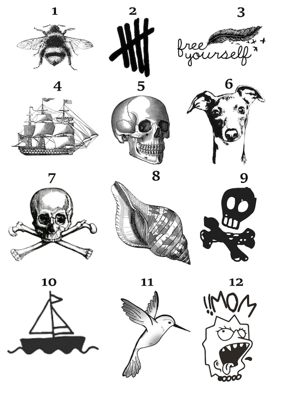 TATUAJE TEMPORAL Tamaño de la muñeca / tatuaje del tamaño del tobillo / perro / calavera / barco / pájaro / sirena / elefante / conejito / espada / descansa en paz / loto - Etsy México