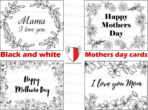 Tarjeta del Día de la Madre en blanco y negro PNG y JPG, te amo diseño de mamá, imágenes prediseñadas de mamá - Etsy México