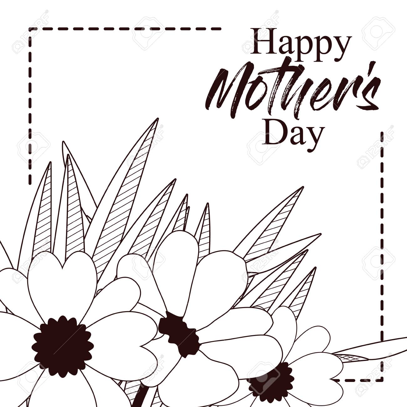 Tarjeta Del Día De Las Madres Felices Con Hermosas Flores En Colores Blanco Y Negro Ilustraciones svg, vectoriales, clip art vectorizado libre de derechos. Image 96900601