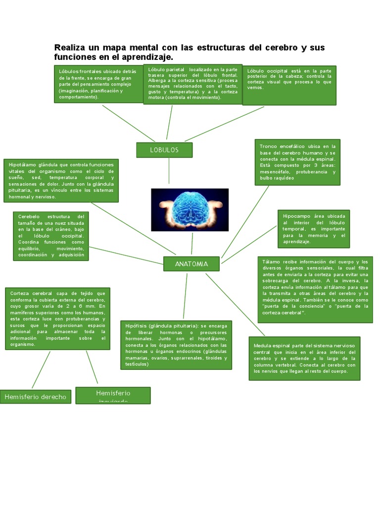 Realiza Un Mapa Mental Con Las Estructuras Del Cerebro y Sus Funciones en El Aprendizaje | PDF | Cerebro | Corteza cerebral