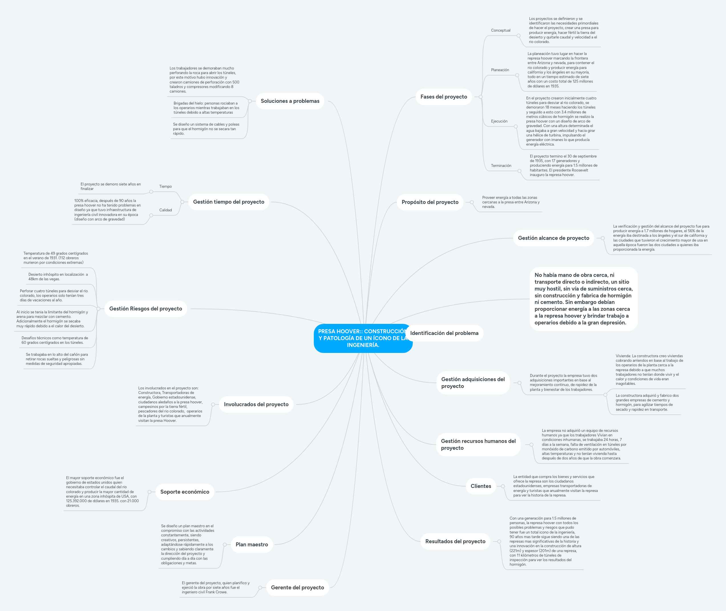PRESA HOOVER:: CONSTRUCCIÓN Y PATOLOGÍA DE UN ÍCONO DE LA INGENIERÍA. - MindMeister Mind Map