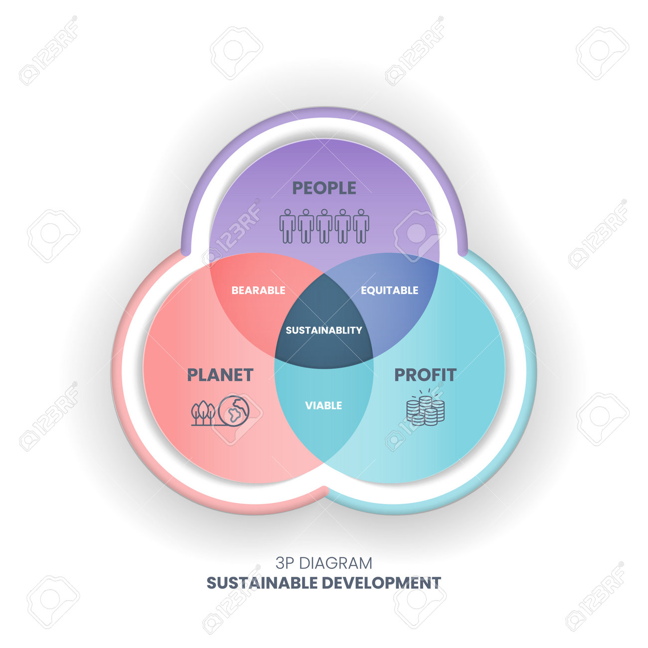 El Diagrama De Sostenibilidad 3p Tiene 3 Elementos: Personas, Planeta Y Ganancias. La Intersección De Ellos Tiene Dimensiones Soportables, Viables Y Equitativas Para Los Objetivos De Desarrollo Sostenible U Ods Fotos, retratos,
