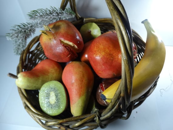 Frutas en cesta de cerámica manzana, limón, pera, naranja, higo, cerezas, fresas, granada, tuna, mandarina, plátano, albaricoque - Etsy México
