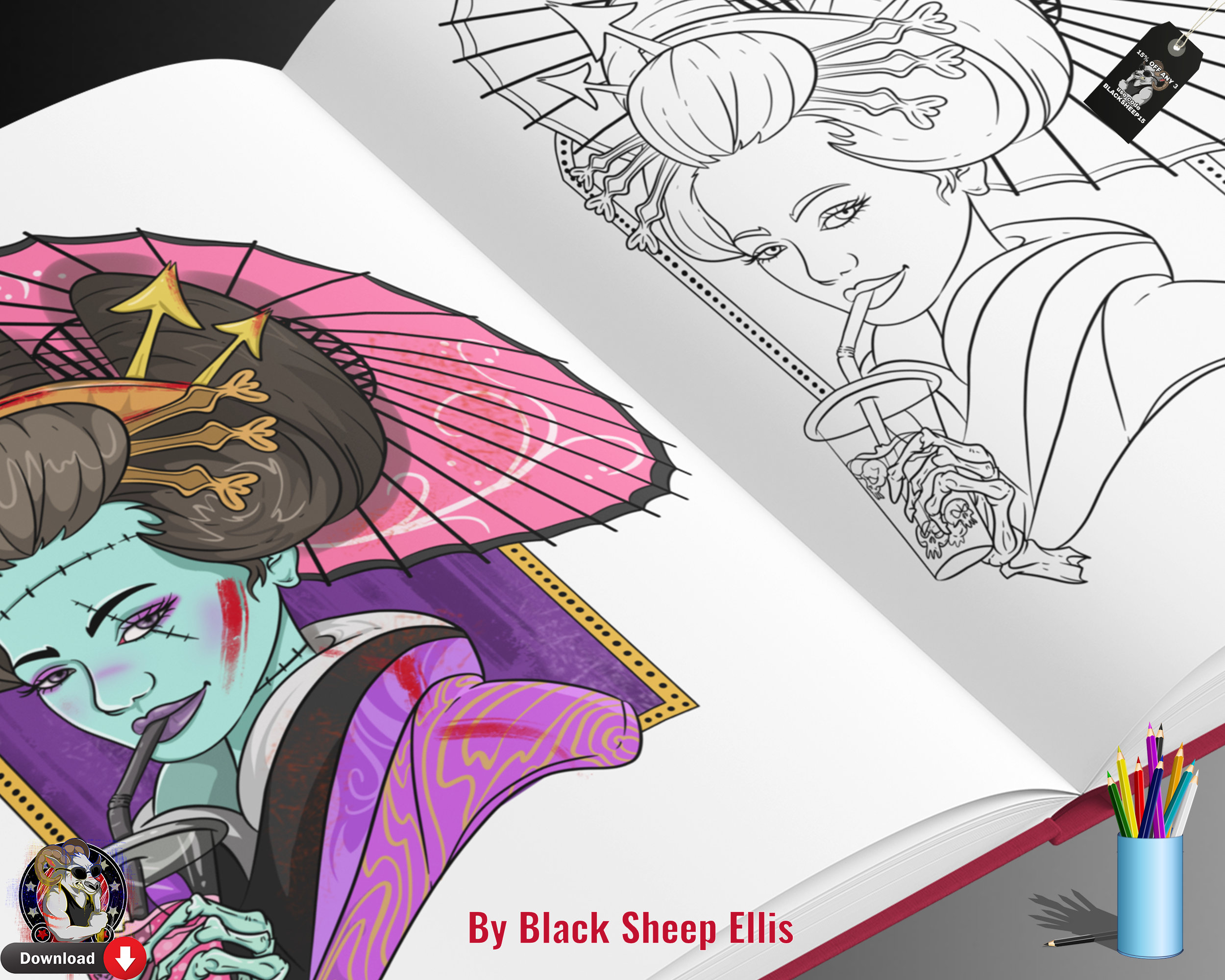 Geisha Png Zombie Printable Gothic Coloring Page Digital Download, Oriental Coloring Sheet Pages for Adults, Monster, Fantasy Horror Print - Etsy