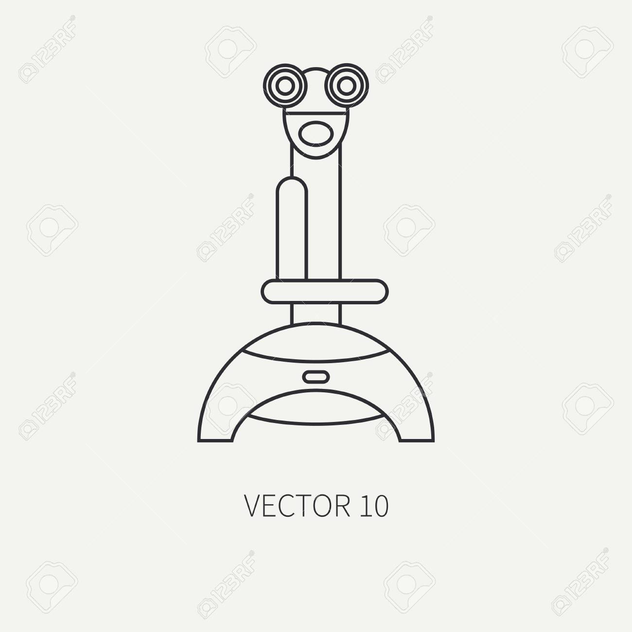 Línea Plana Vector Computadora Parte Icono Joystick. Estilo De Dibujos Animados Dispositivo De Escritorio De La Oficina De Juegos Digitales Y Juegos Digitales. Gadget De Innovación. Gamepad. Ilustración Y Elemento Para Su