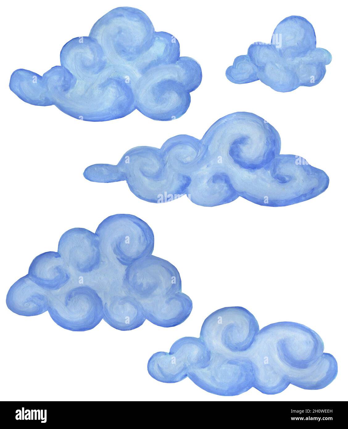 Juego de nubes de dibujos animados de color azul oscuro. Ilustración infantil. Aislado sobre fondo blanco. Dibujado a mano Fotografía de stock - Alamy