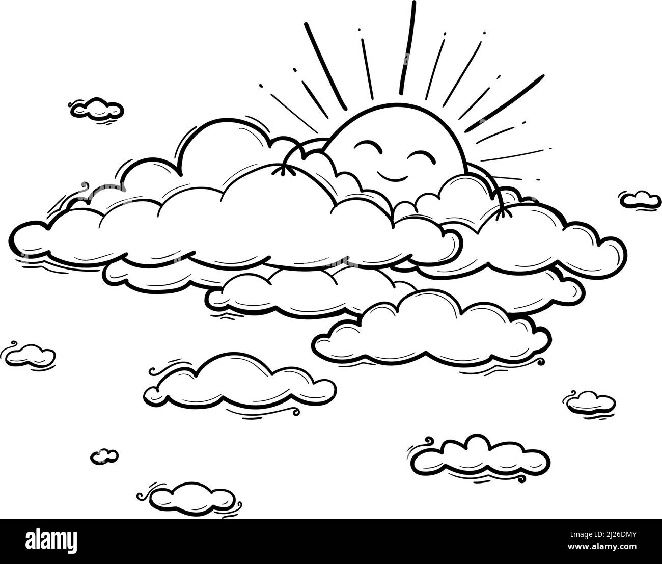 Juego de nubes dibujadas a mano. Nube de estilo de boceto de fideos. Dibujo de garabatear de contorno simple. Ilustración vectorial Imagen Vector de stock - Alamy