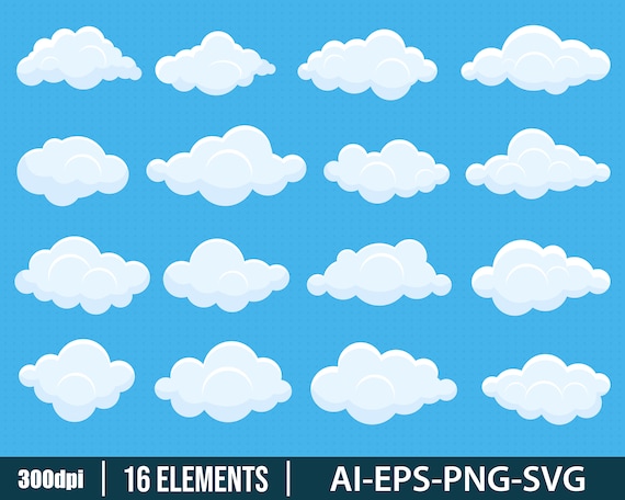 Conjunto de ilustraciones de diseño vectorial de nubes blancas. Nube blanca, nublada, dibujo, conjunto de iconos. Impresión de imágenes prediseñadas vectoriales - Etsy México