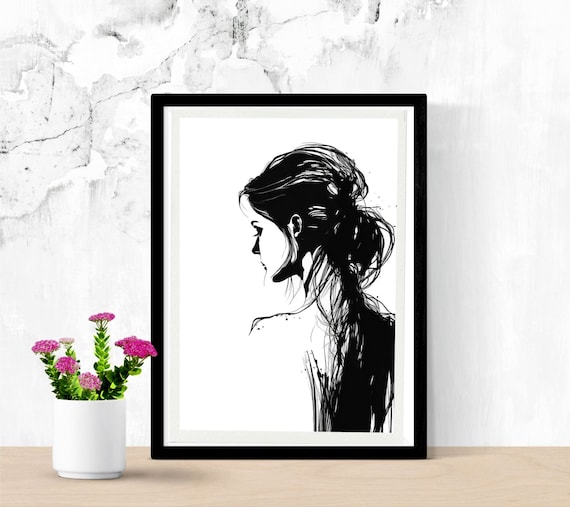 Dibujo de retrato de rostro de mujer: ilustración a lápiz blanco y negro. Arte vivo. Arte de oficina. DESCARGA DIGITAL - Etsy España