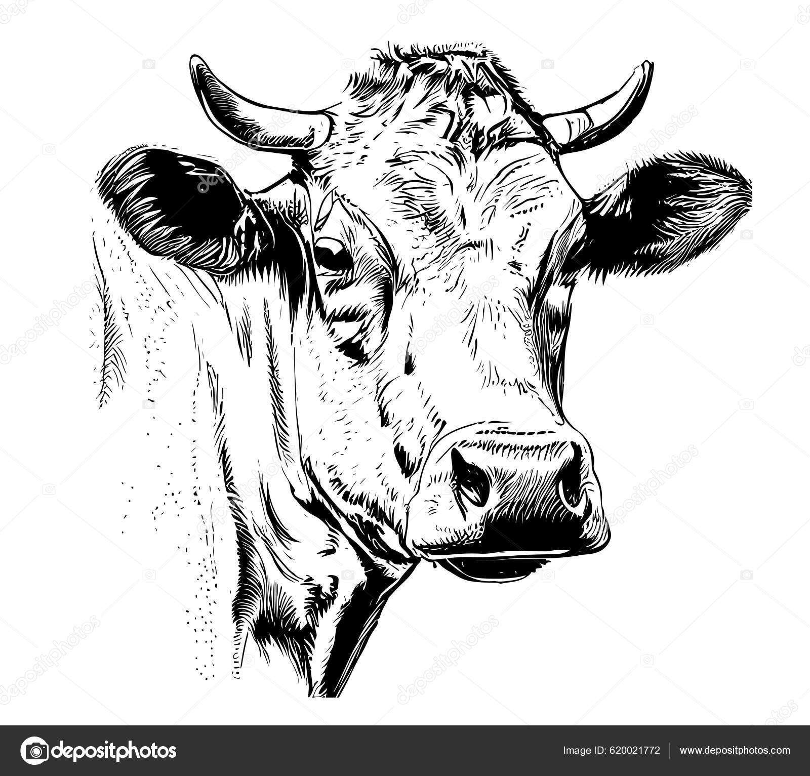 Cabeza De Vaca Aislada Sobre Blanco. Dibujo a Lápiz Detallado Realista. Stock de ilustración - Ilustración de blanco, pista: 211078010