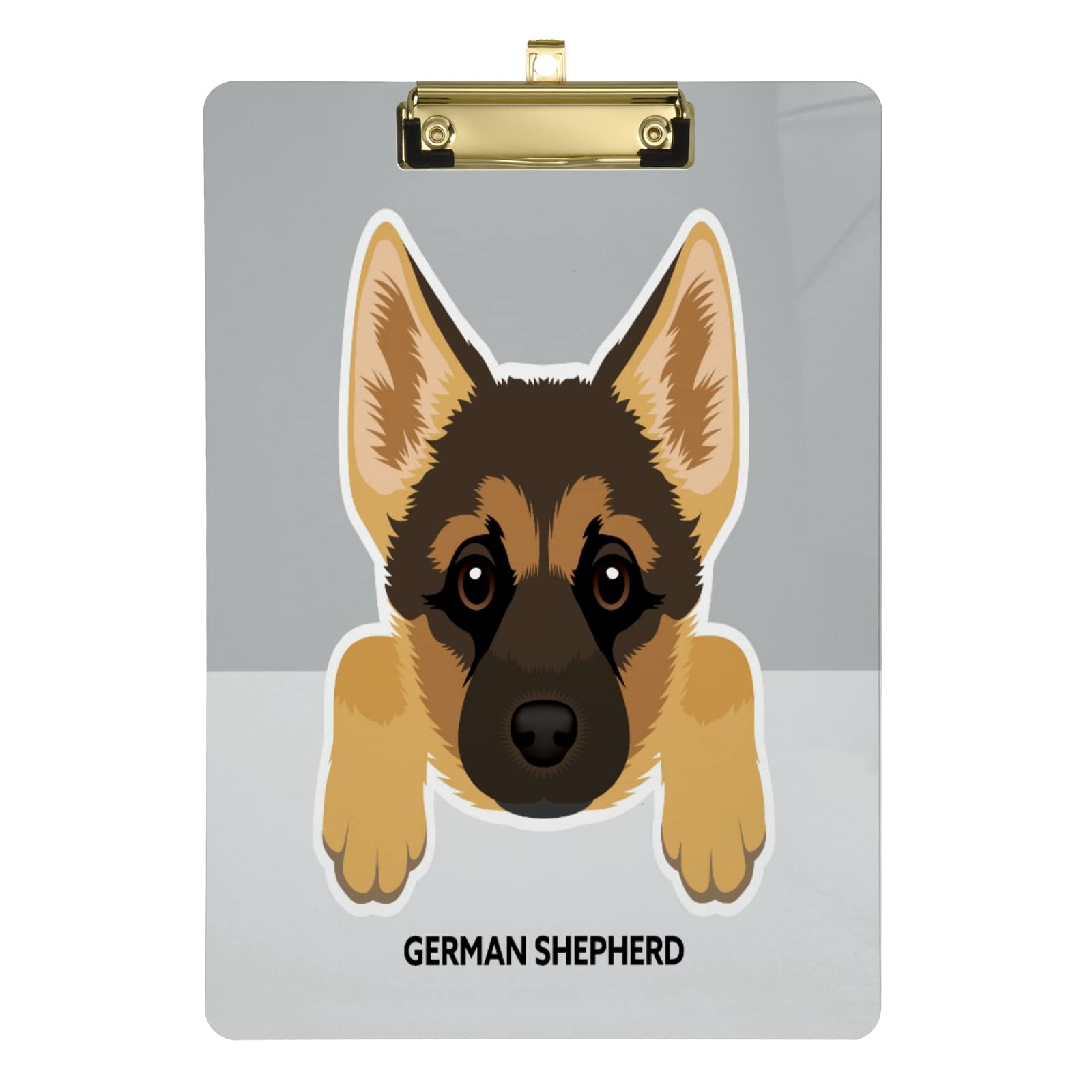 Dibujos animados de perro pastor alemán portapapeles lindo cachorro A4 tamaño carta tablero decorativo con clip