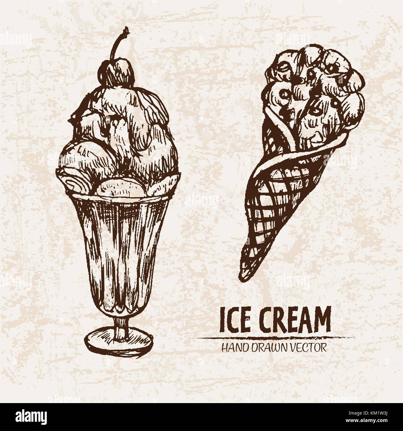 Boceto Rápido De Helados Hecho En Niños Estilo De Dibujo De Lápiz Texturizado. Stock de ilustración - Ilustración de paquete, cono: 197325236