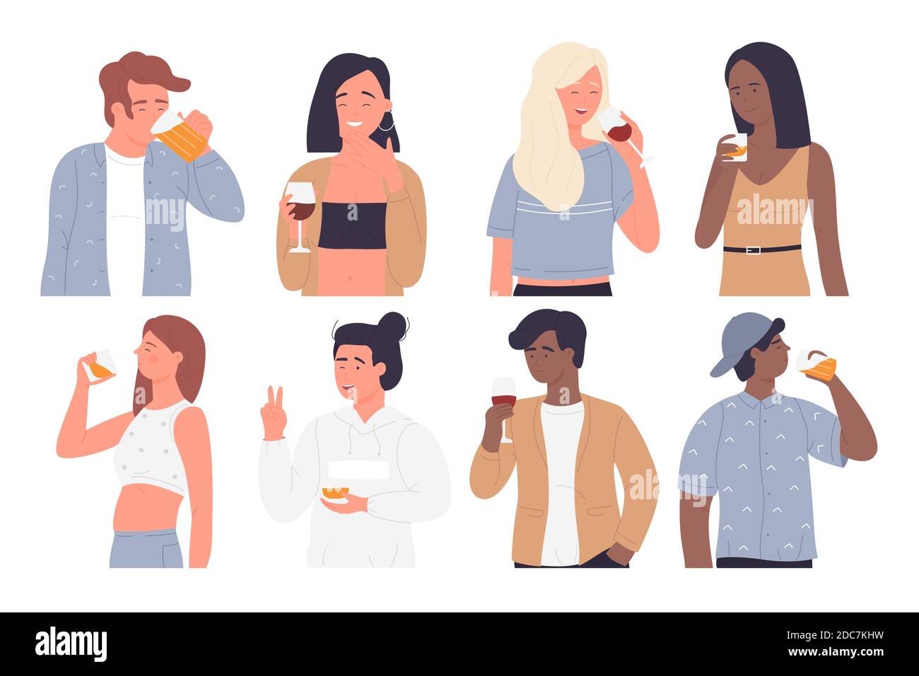 Las personas beben el conjunto de ilustración vectorial. Dibujos ...