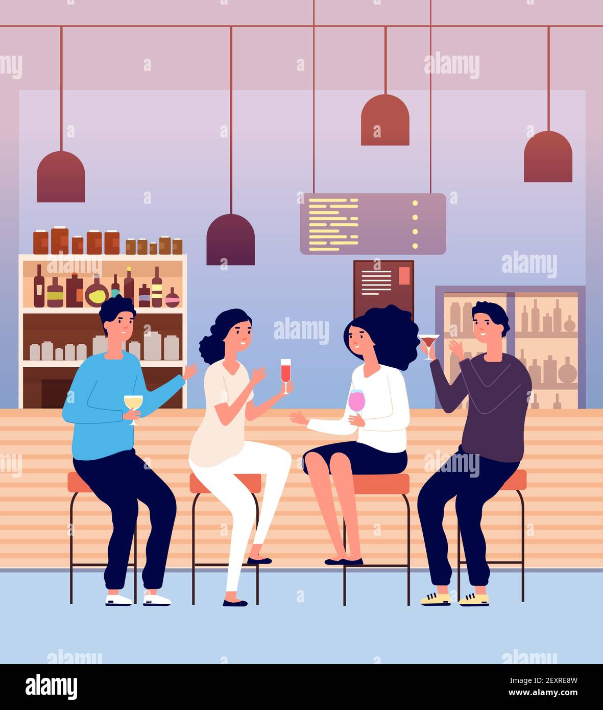 Amigos en el pub. Los hombres y las mujeres beben inyecciones de ...