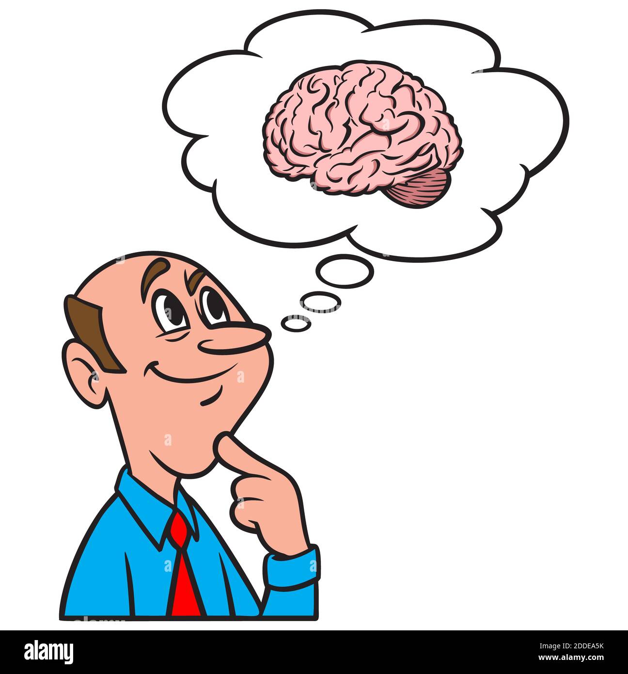 Pensar en el cerebro humano - una ilustración de dibujos animados de un hombre pensando en el cerebro humano Imagen Vector de stock - Alamy